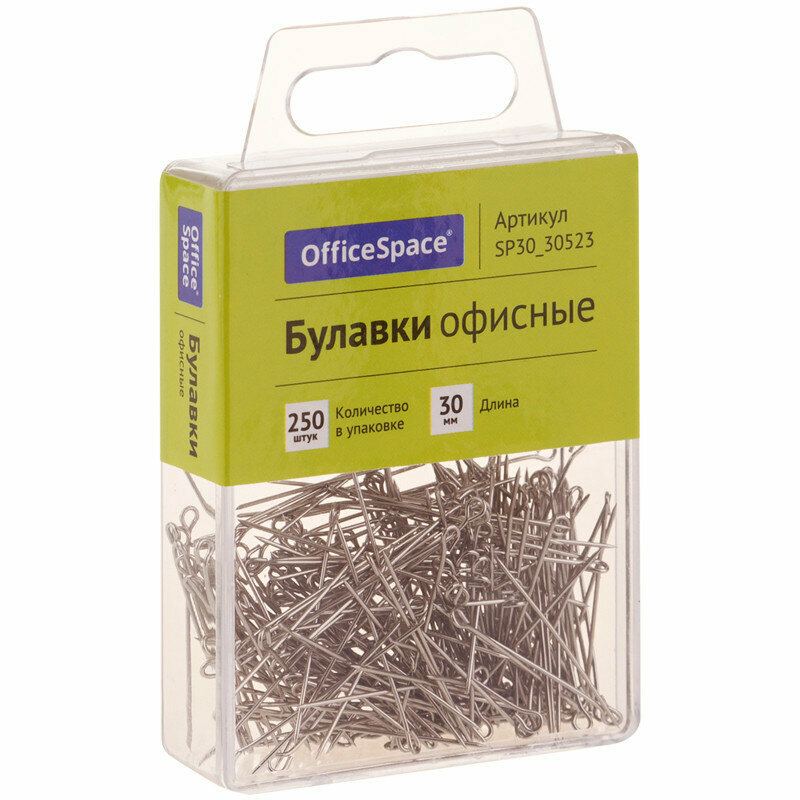Булавки офисные OfficeSpace, 30мм, 250 шт., пластик. коробка, европодвес
