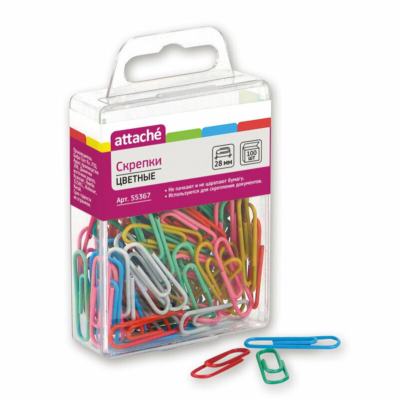 Скрепки канцелярские цветные Attache, 28 мм, 100 штук в упаковке