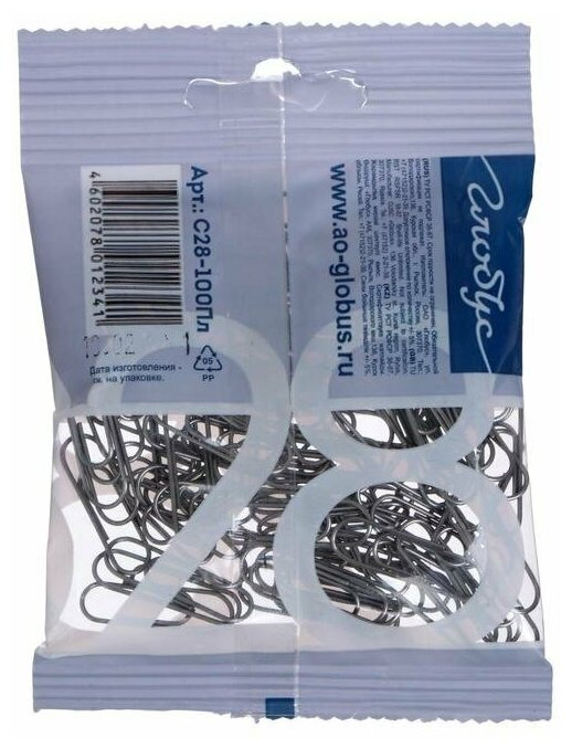 Скрепки Глобус металлические без покрытия 28 мм 100 шт. в упаковке флоу-пак
