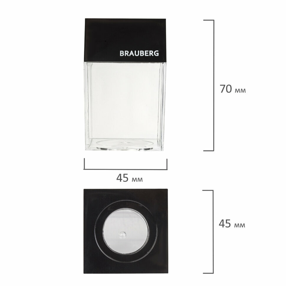Скрепочница магнитная Brauberg С 30 скрепками, прозрачный корпус, черная крышка (225189)