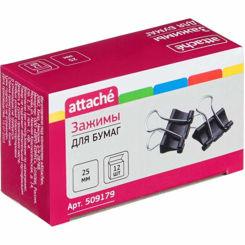 Зажимы для бумаг Attache 25 мм черные (12 штук в упаковке), 509179