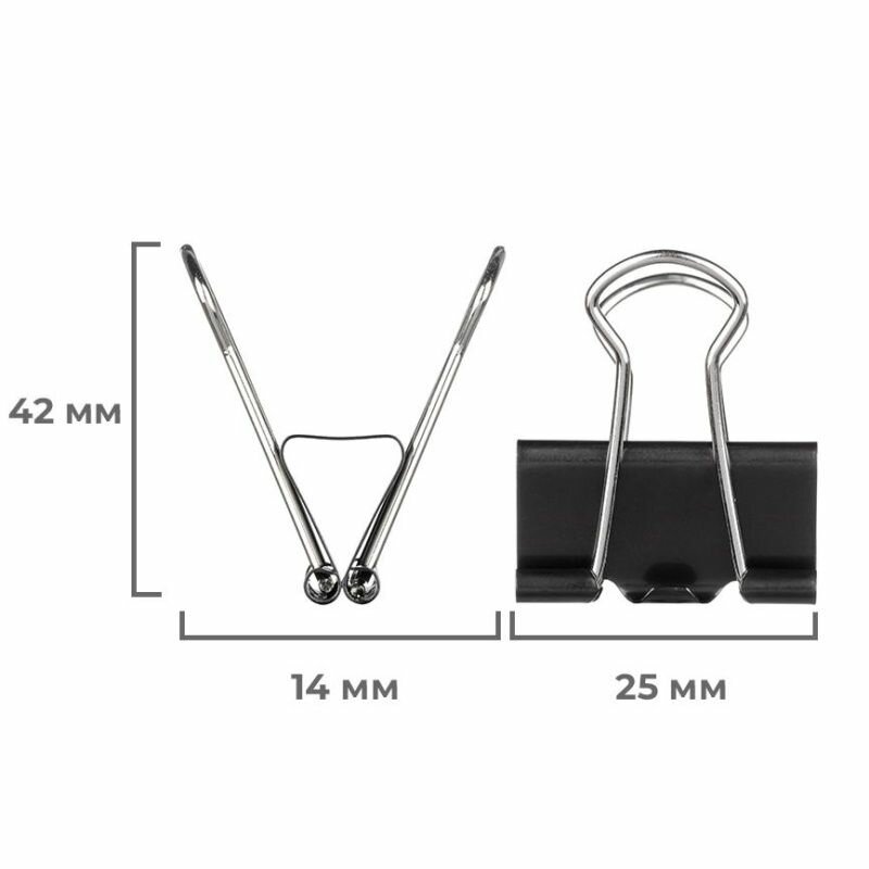 Зажим для бумаг 25мм 12 штук упаковка, цвет чёрный