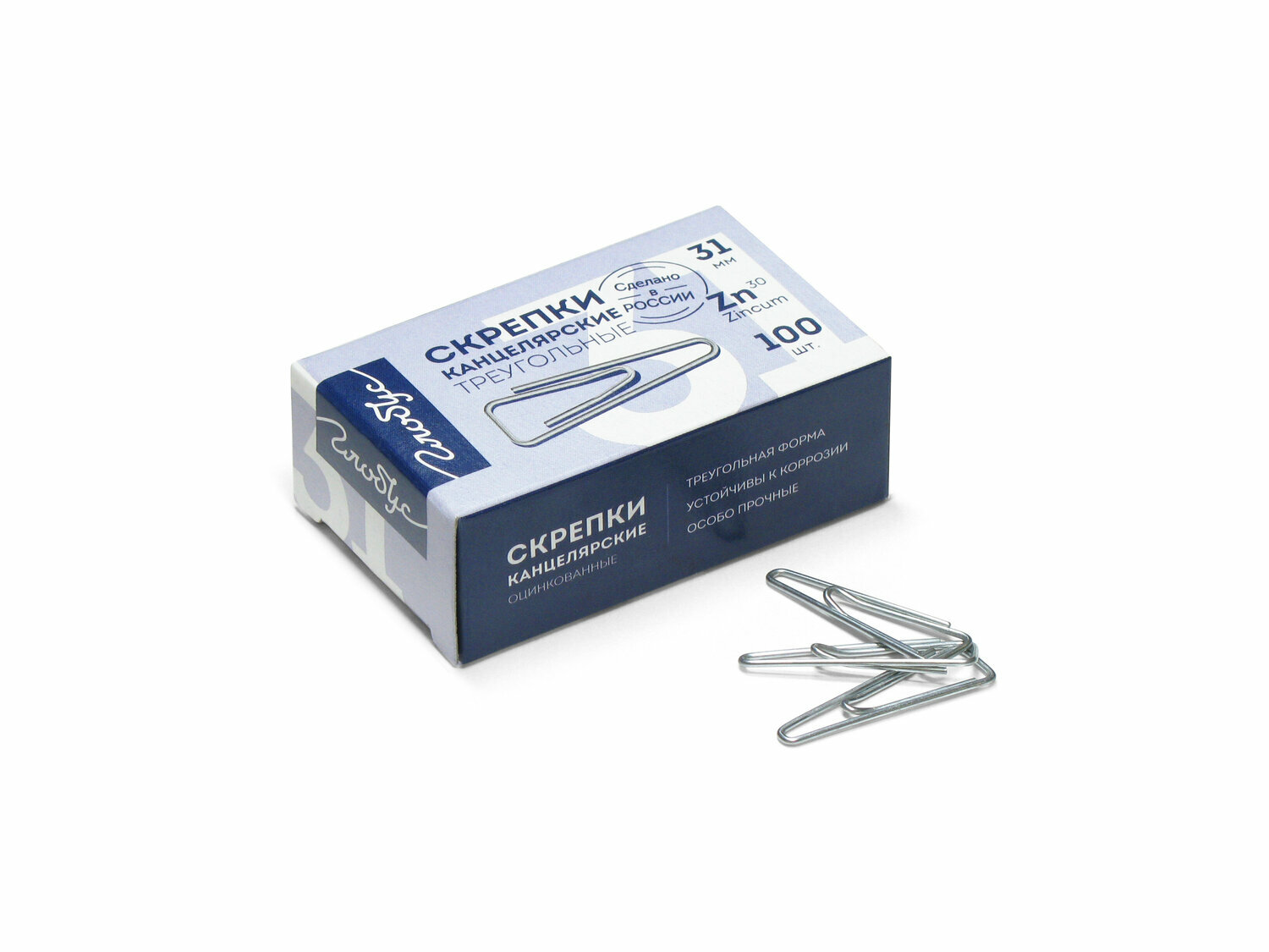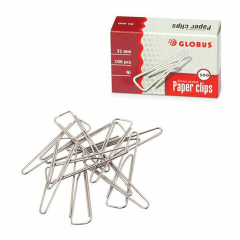 Скрепки 31мм, Globus, 100шт., оцинкованные треугольные, с отогнутым носиком, карт. упаковка ( Артикул 323674 )