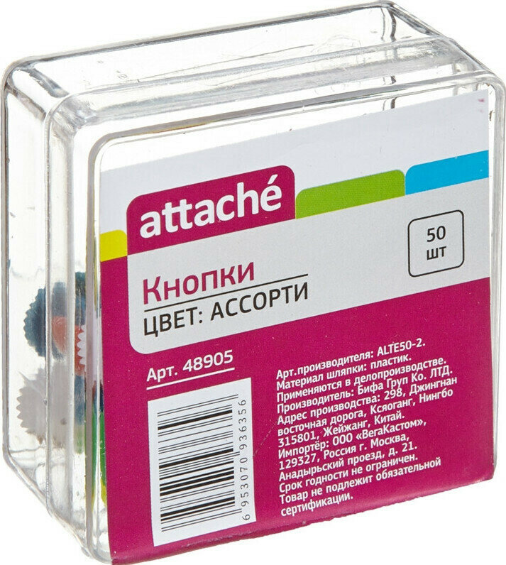 Кнопки канцелярские Кнопки Attache, 12 миллиметров, 4 упаковки по 50 штук (цвет в ассортименте) интересное: