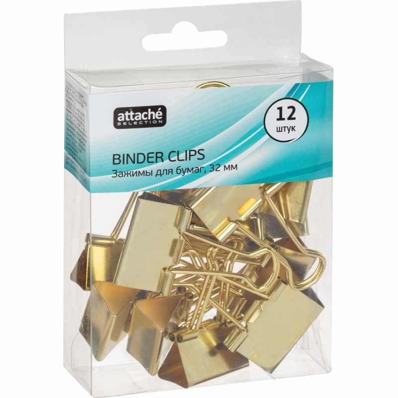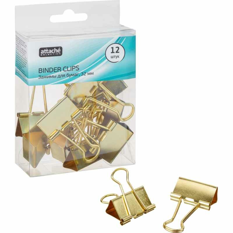 Купить Зажим для бумаги Зажим для бумаг Attache Selection, 32 миллиметра, 12 штук (золотистый)