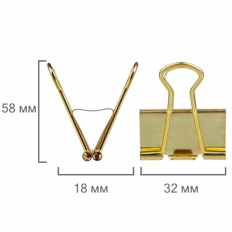 Зажимы для бумаг Attache Selection 32 мм золотые 12 штук в упаковке, 878649