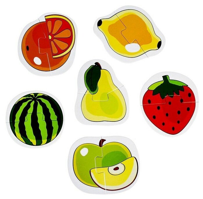 Детский напольный пазл "Фрукты и ягоды" малый, картинки-половинки для малышей, 12 деталей из картона