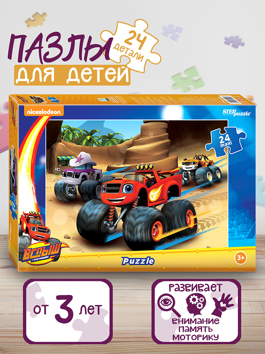 Красочный макси-пазл "Вспыш и чудо-машинки", игра-головоломка для малышей, 24 крупных ярких детали, развитие внимания и мелкой моторики