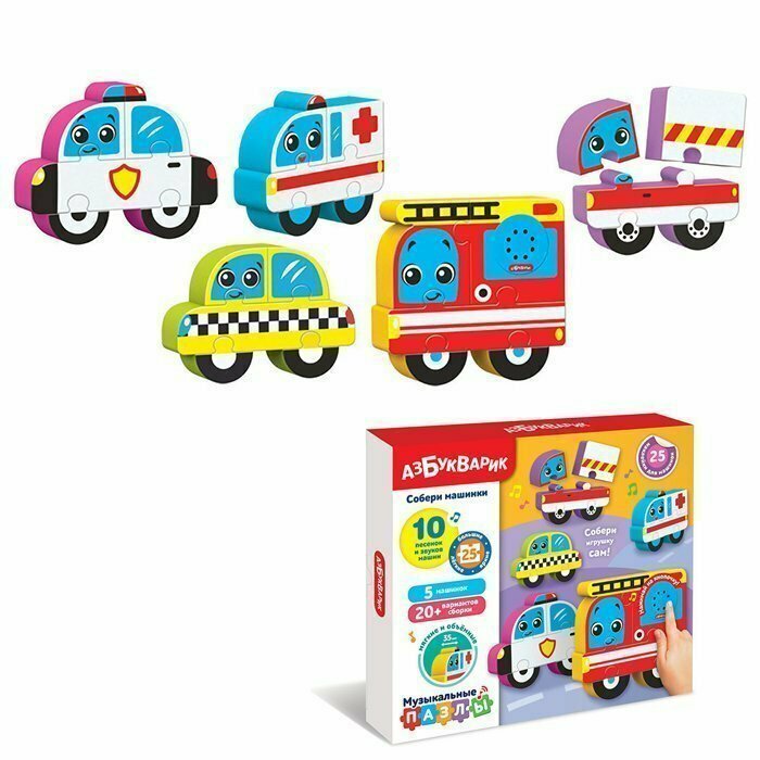 Купить Игрушки Азбукварик Муз. пазлы 4630027292124 Собери машинки