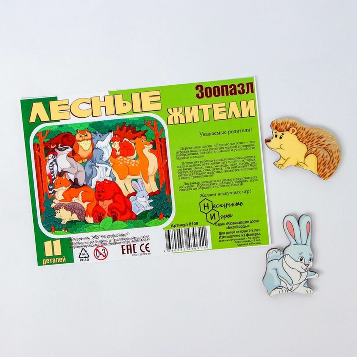Зоопазл Лесные жители 11 деталей Нескучные игры 8109