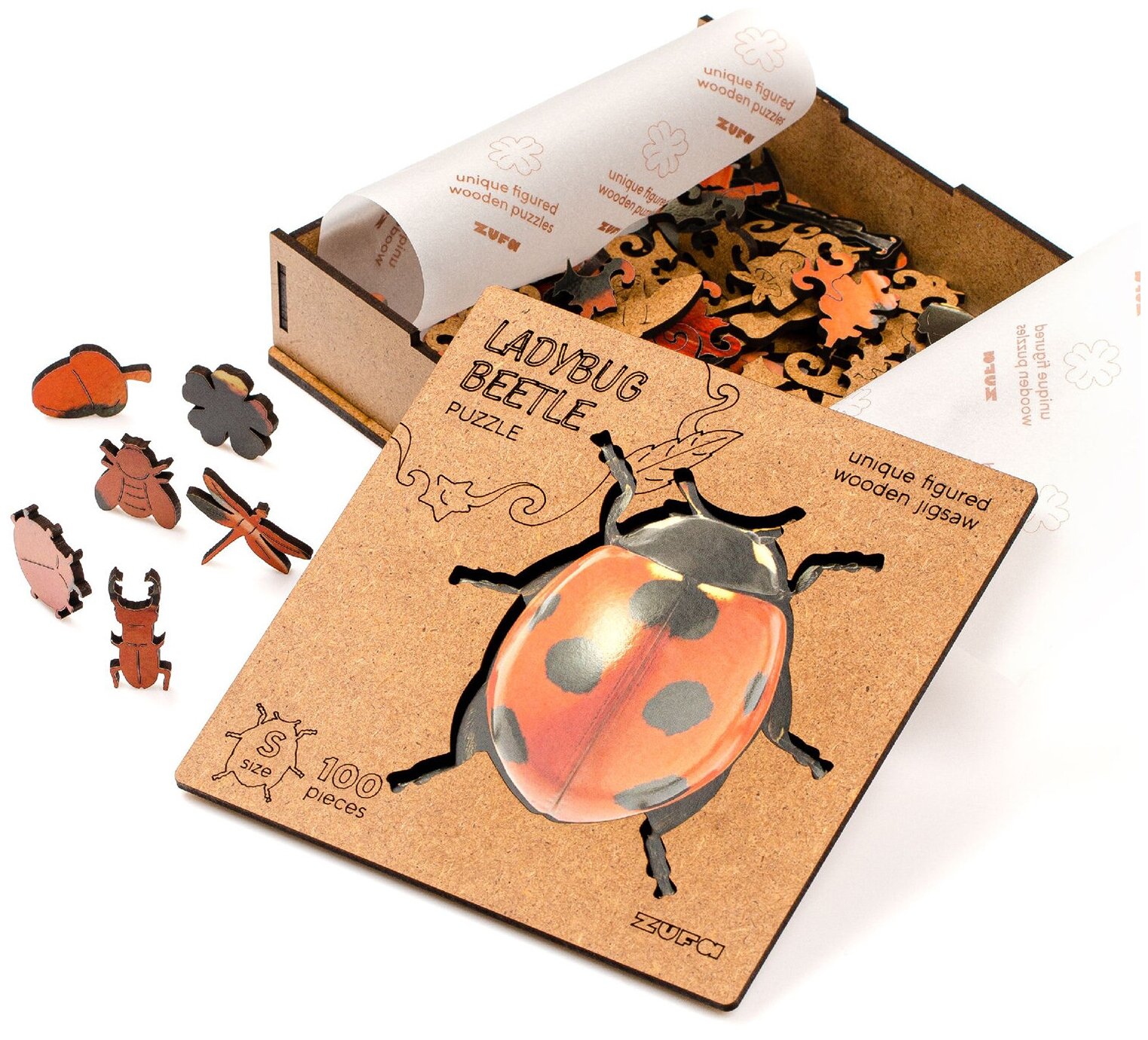 Деревянные пазлы для взрослых и детей Zufa / Фигурные пазлы / Подарок ребенку, женщине, мужчине / Божья коровка S интересное: