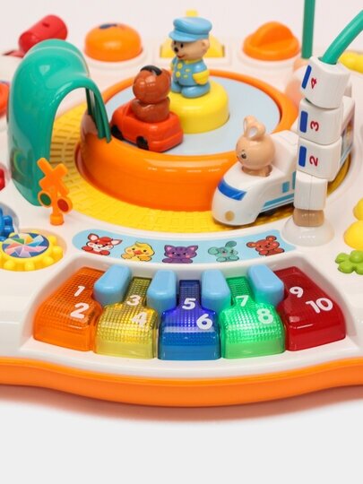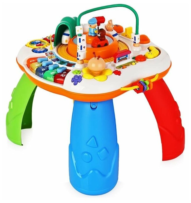 Отличный столик, много всего интересного. И поезд едет и пианино, разные пищалки. Покупали на подарок.