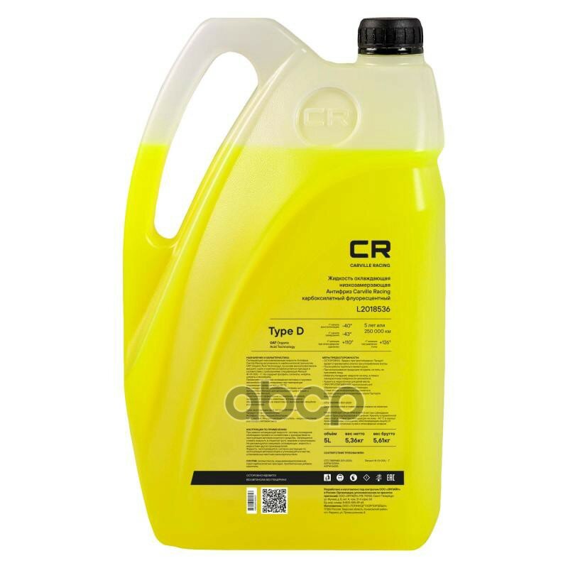 Купить Антифриз Cr Для А/М Renault (Лада, Nissan), Type D, Флуор. -40с, Желтый, Готовый, 5л/5.37кг (L20185 Carville Racing арт. L201...