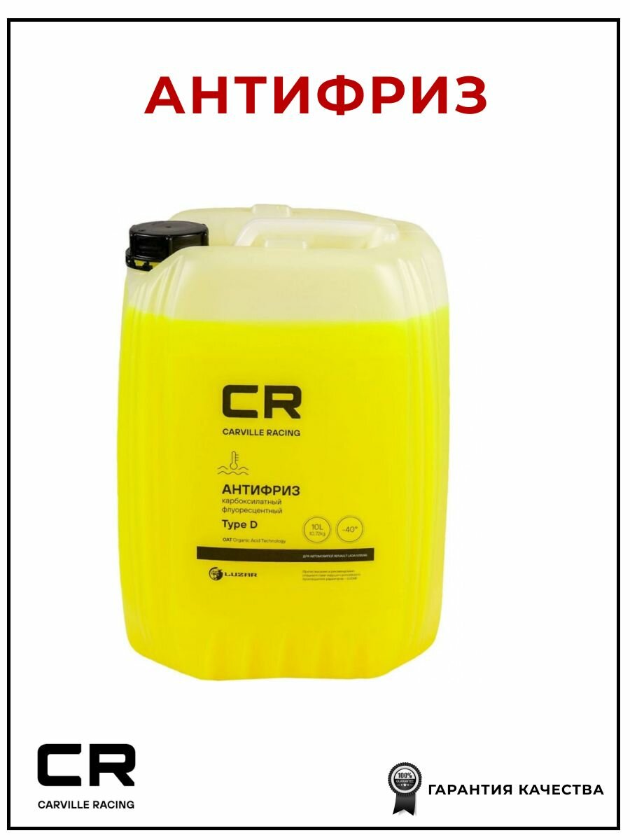 Антифриз Cr Для А/М Renault (Лада, Nissan), Type D, Флуор. -40°с, Желтый, Готовый, 10л/10.74кг L2018537 Carville Racing арт. ...