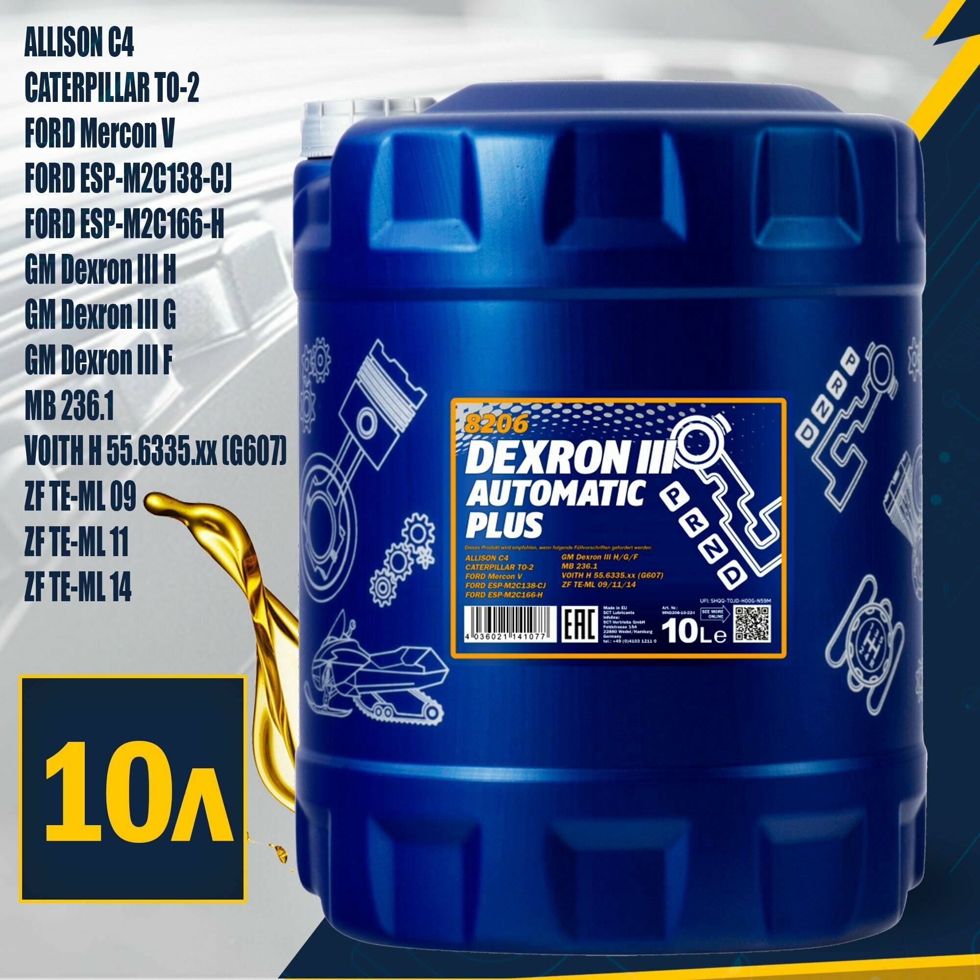 Купить 8206-10 Трансмиссионное Масло Atf Dexron Iii 10Л Mb 236.1,Ford M2c138-Cj, M2c166-H; Voith H 55.6335.Xx (G607), Caterpillar To...