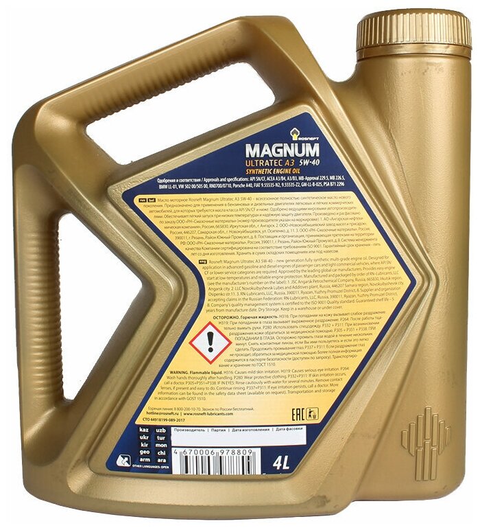 p.s: позже продавец Rosma пропал из маркетплейсов, поэтому ещё два раза, беру данное масло у продавца Енисей-Сервис, это тоже официальный дистрибьютор! Цена у него отличная. Масло это всегда радовало - двигатель работает ровно и без вибраций, а на холостых очень тихо. Масло на щупе темнеет в меру и постепенно - значит отмывает двигатель неплохо. По поводу работы при очень низких температурах ничего сказать не могу, т.к. живу на юге. Подъедается активно - до 2л/10тыс, но эта не вина масла, просто модель моего двигателя (CWVA) во всех автомобилях VAG имеет высокий расход масла (поэтому и беру сразу 2шт по 4л) Раньше брал этот продукт на фирменных АЗС Роснефть. Заливаю в Polo Sedan рест (1.6/110) уже в четвёртый раз, меняю на 10тыс - полёт нормальный, нареканий нет. Если ваш пробег в основном по городу, либо у вас агрессивный стиль вождения, то рекомендую менять ещё чаще - раз в 8-9тыс, для малолитражных турбированных моторов - не реже 7-8тыс! Не путайте Ultratec и Ultratec A3 - совершенно разные масла. В первом есть только соответствия стандартам, а во-втором - полноценные одобрения производителей, да и некоторые допуски повыше классом, поэтому оно значительно дороже. Хотя не до конца понятно, чем же заменили западные присадки ввиду санкционных ограничений. Данный продукт - топовое масло в линейке 5w40 от Роснефти. Рекомендую |