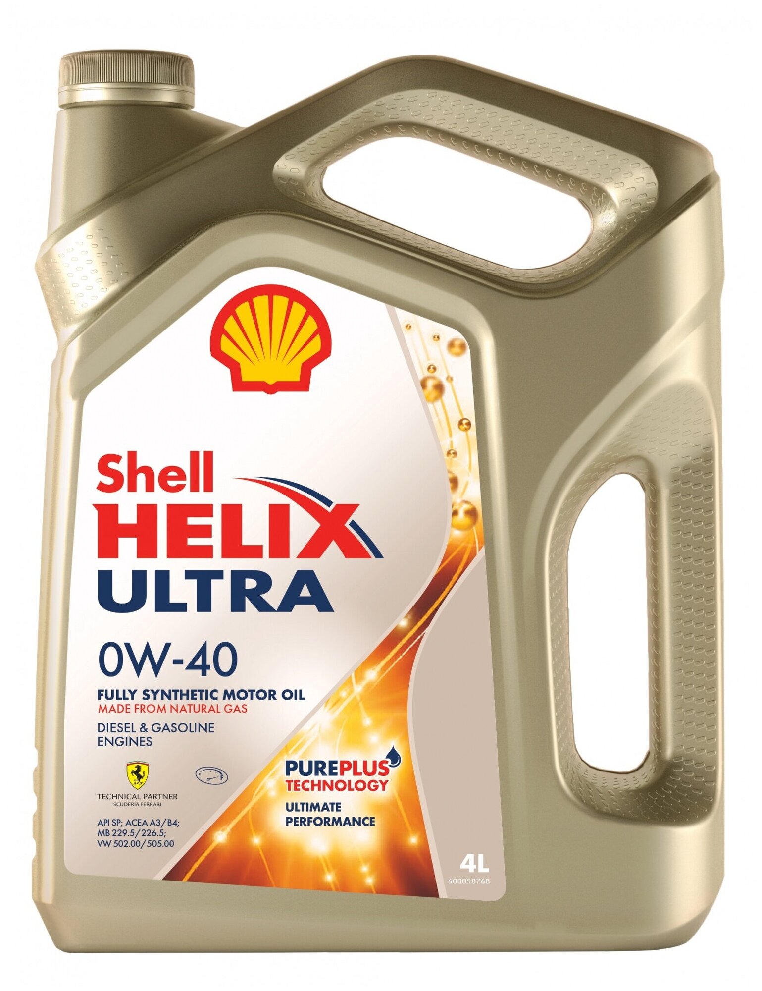 Масло моторное Shell Helix Ultra 0w40 синтетическое, SN/SN PLUS/CF, ACEA A3/B3/B4, универсальное, 4л, арт. 550055900