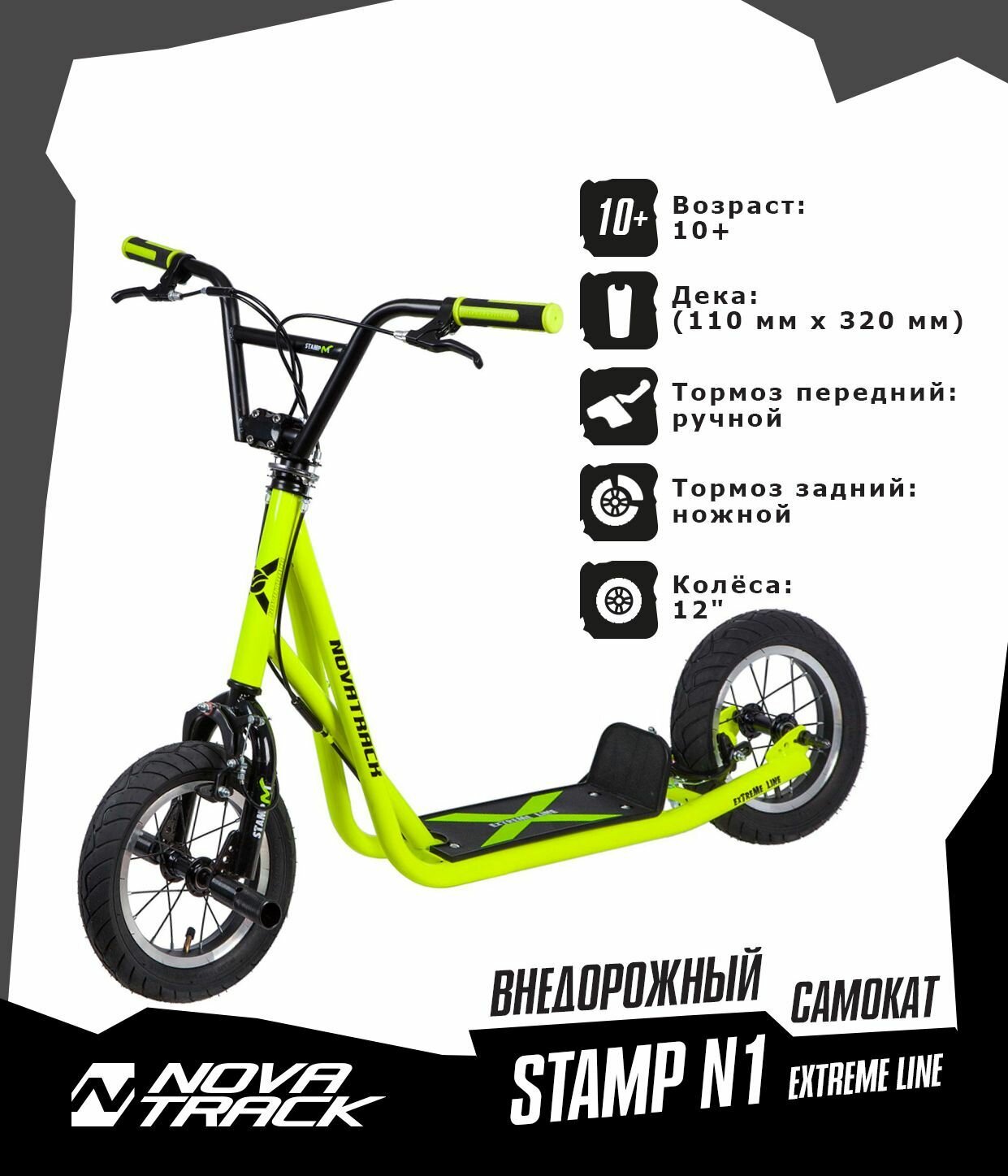 Самокат Novatrack Stamp N1 Extreme Line 12", Зеленый 12STAMPN1EL.GN8