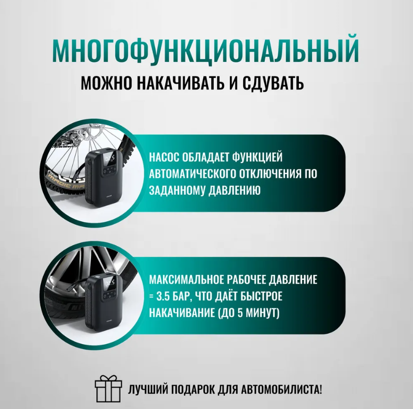 | Плюсы: | Отличная вещь для подкачки колес |