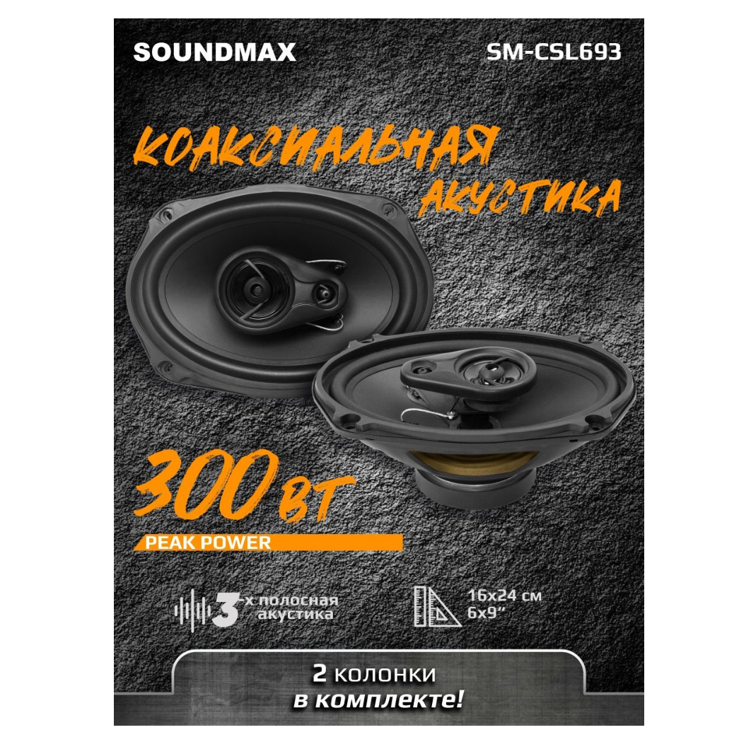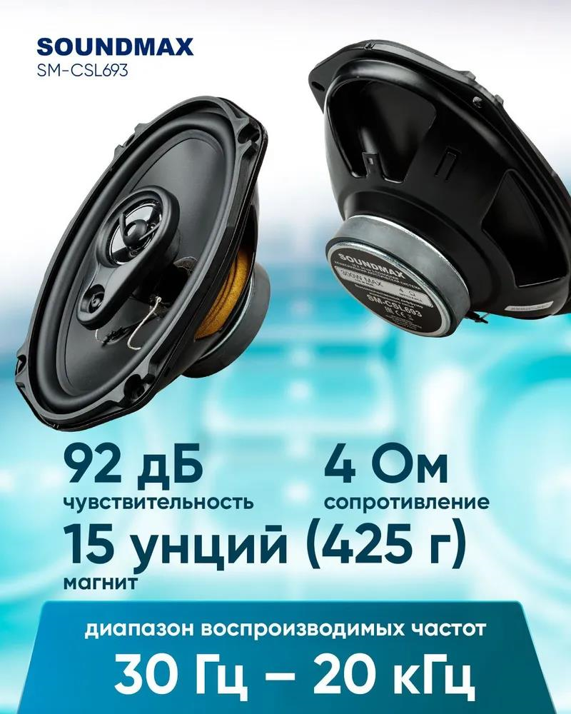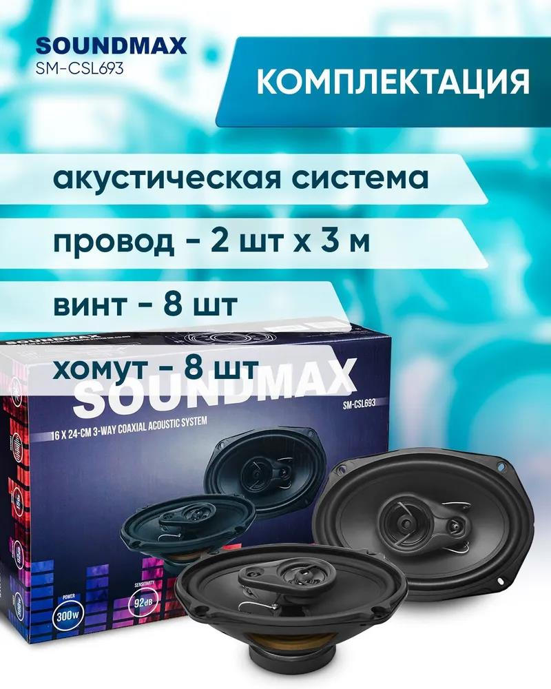 Колонки автомобильные Soundmax SM-CSL693 300Вт 92дБ 4Ом 15x23см (6x9дюйм) (ком.:2кол.) коаксиальные трехполосные