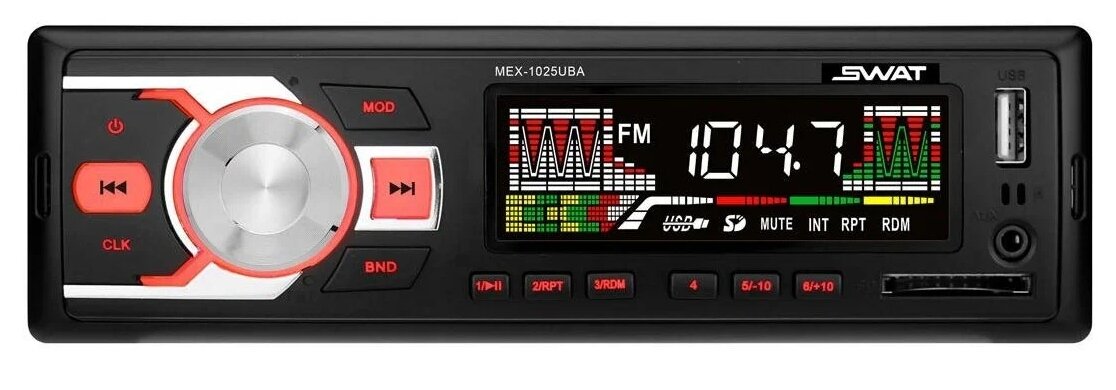 Автомагнитола swat mex-1025uba 1 din медиа ресивер 4х35 вт. mp3, usb, sd, 2rca красная подсветка