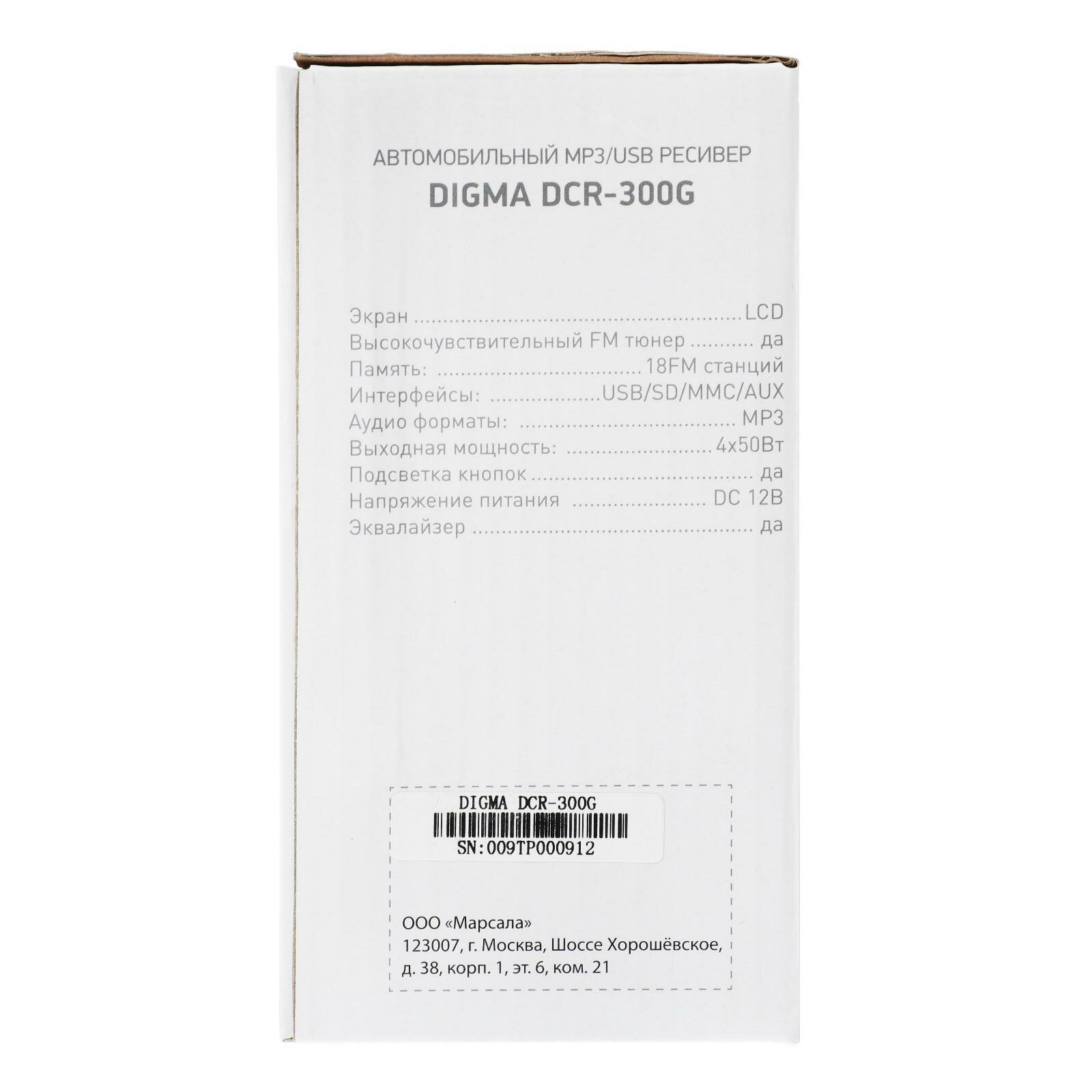 Автомагнитола Digma DCR-300G 1DIN, 4 х 45 Вт, USB, SD/MMC, AUX