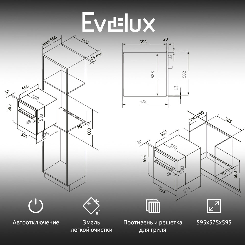 Evelux Духовой шкаф Evelux EO 610 B 595x575x595 Черный