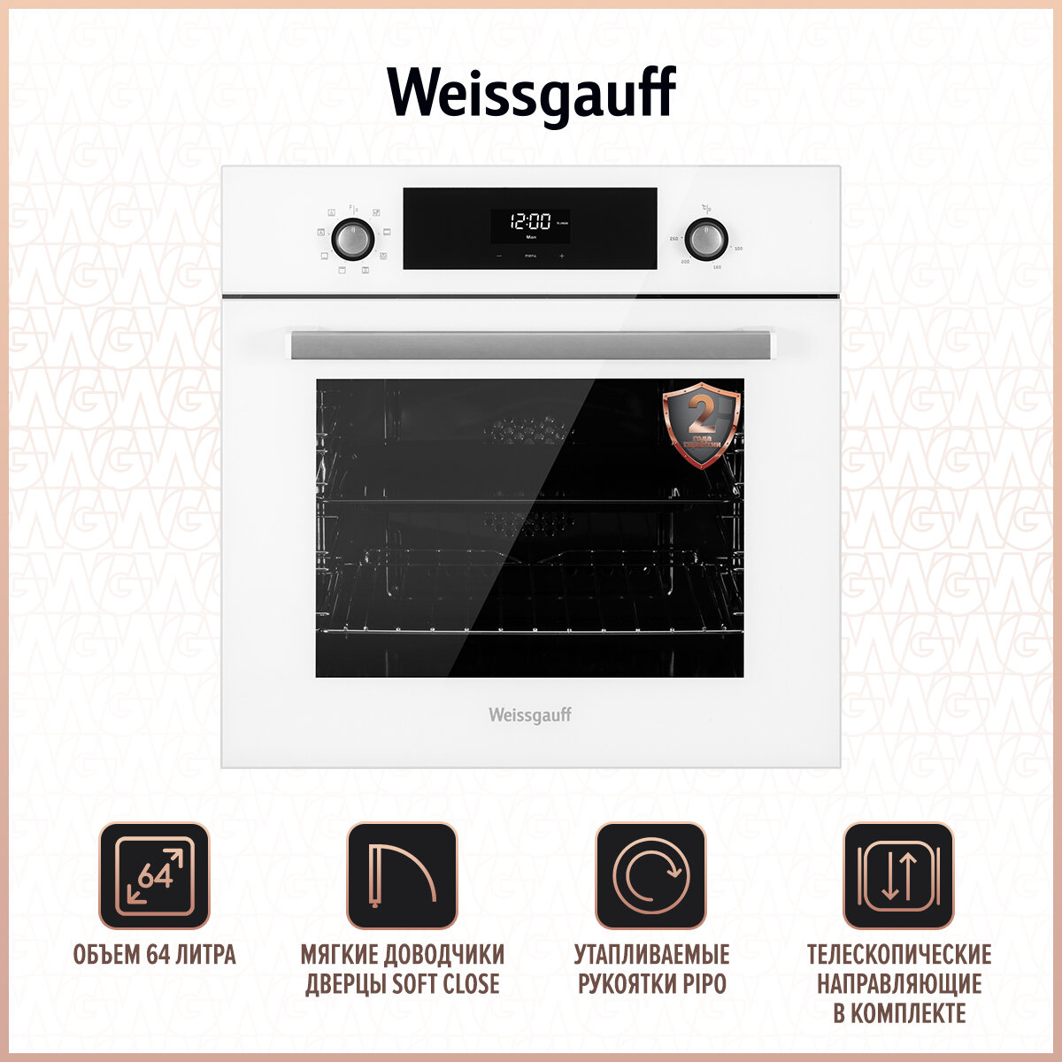 Электрический духовой шкаф Weissgauff EOV 312 SW, 9 режимов, гриль и конвекция, объем XL 64 литра, 3 года гарантии