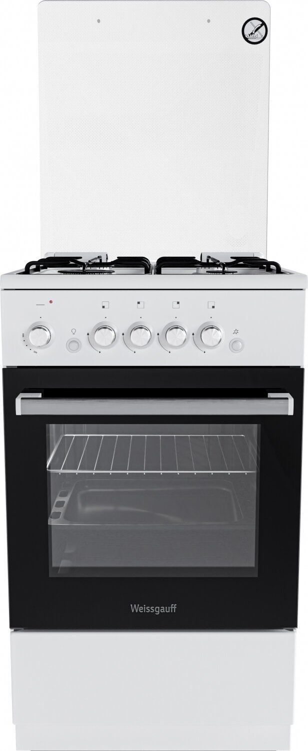 Газовая плита Weissgauff WGS G4G02 WS 3 года гарантии, Объем 60 литров, Электроподжиг, Комплект для подключения сжиженного газа