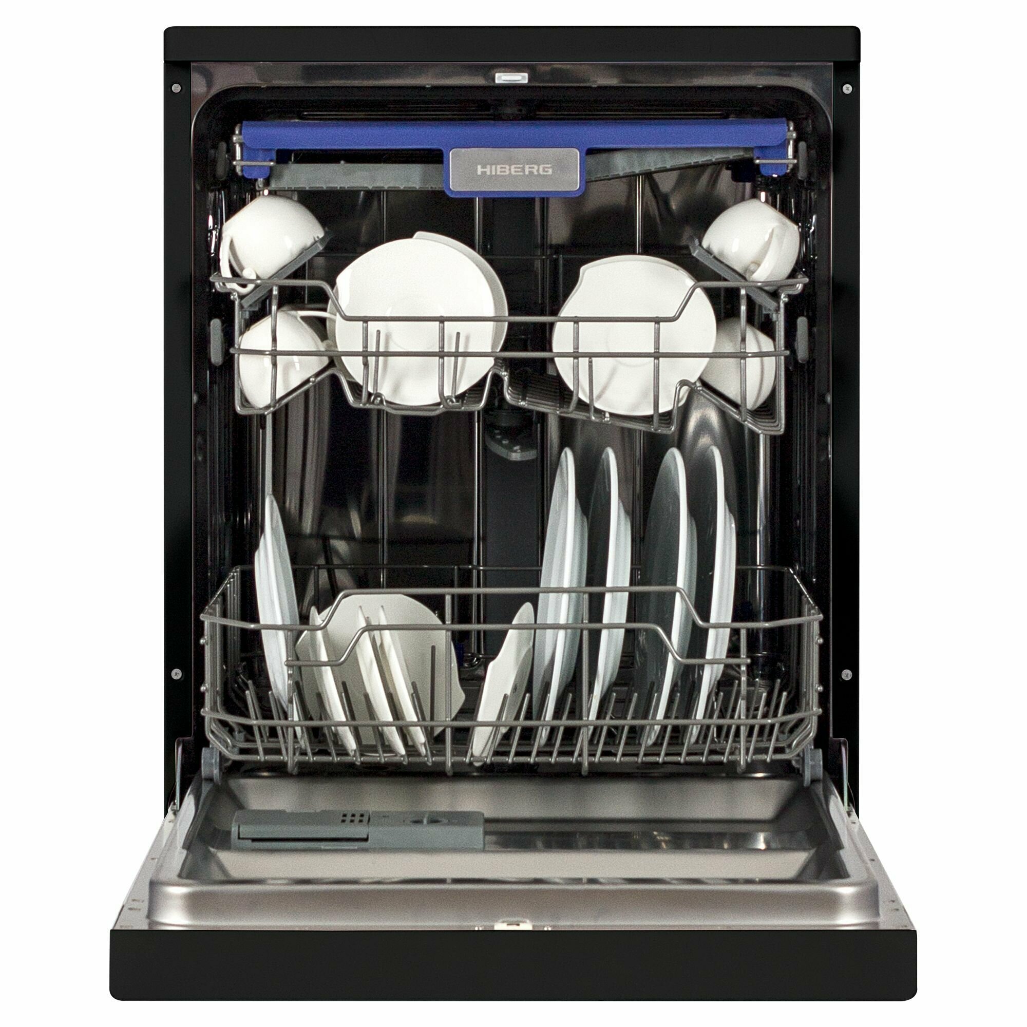 Посудомоечная машина "Hiberg" F68 1430 B, отдельностоящая, 14 комплектов, 8 программ, конденсационная сушка, чёрная