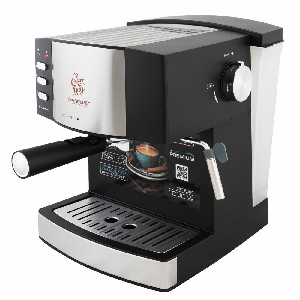 Кофеварка рожкового типа Endever Costa-1080, съемный бак для воды объемом 1,6 л, материал- нержавеющ