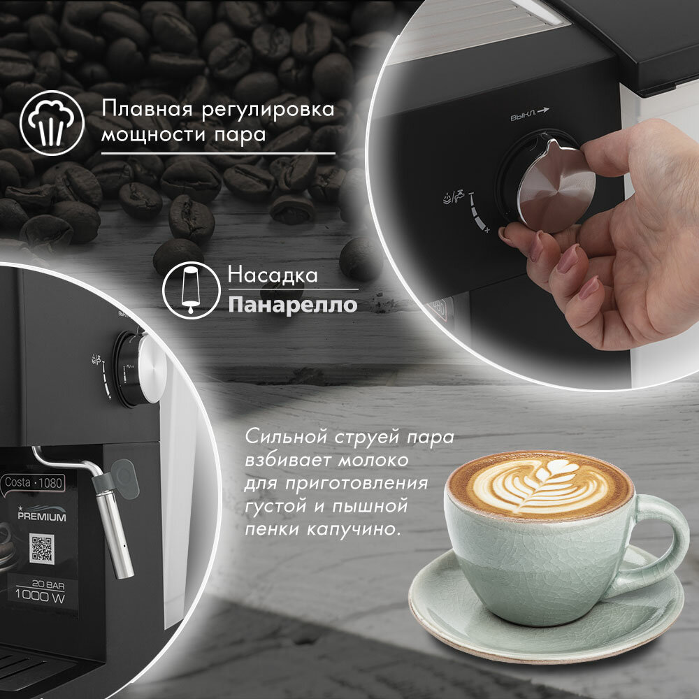 Кофеварка рожковая Endever Costa-1080 / 1000 Вт / 20 Бар / 1,6л / насадка панарелло
