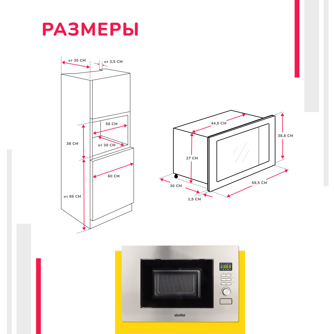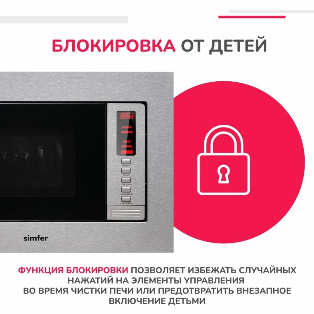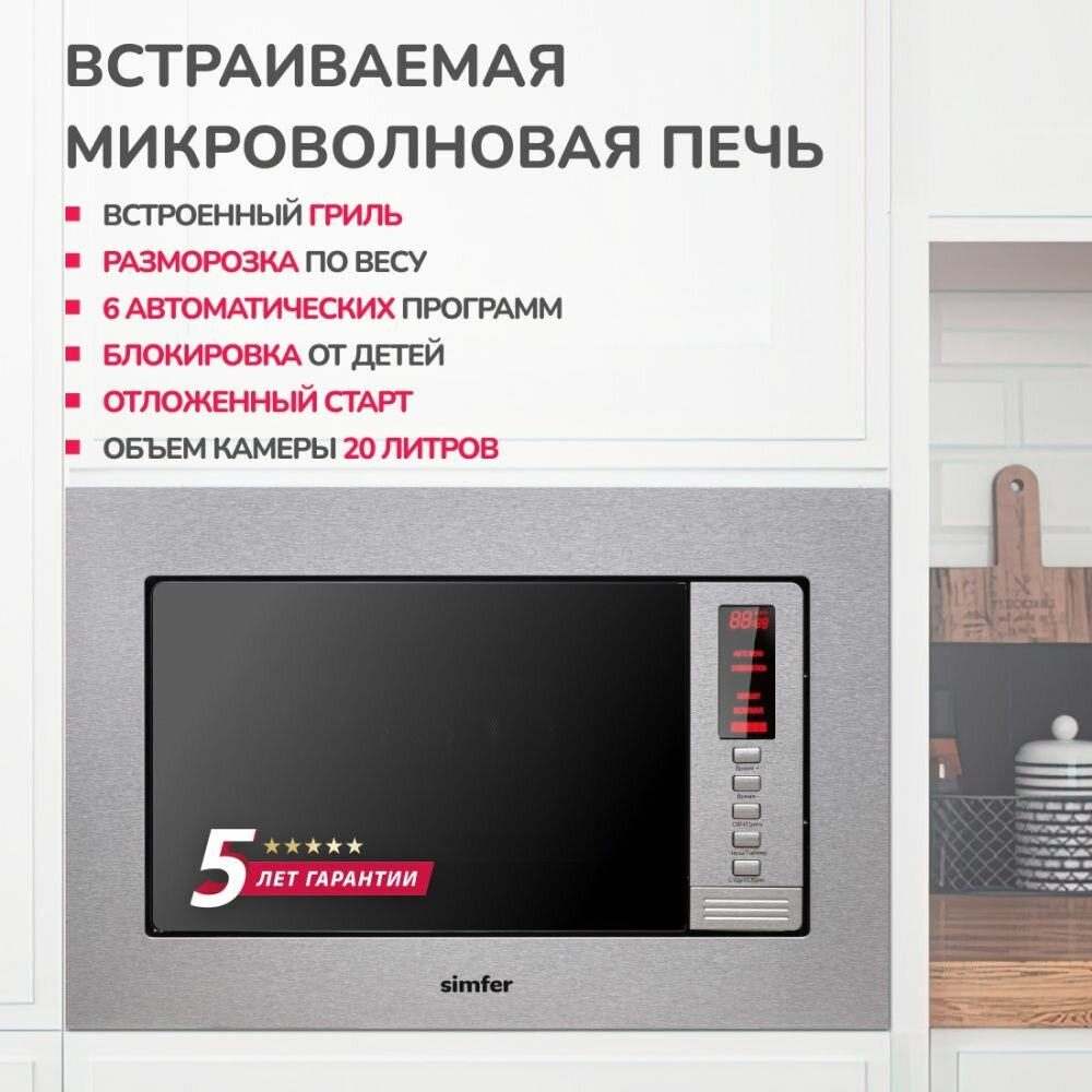 Встраиваемая микроволновая печь Simfer MD2210, 20 литров, 1080 Вт, Нержавеющая сталь интересное: