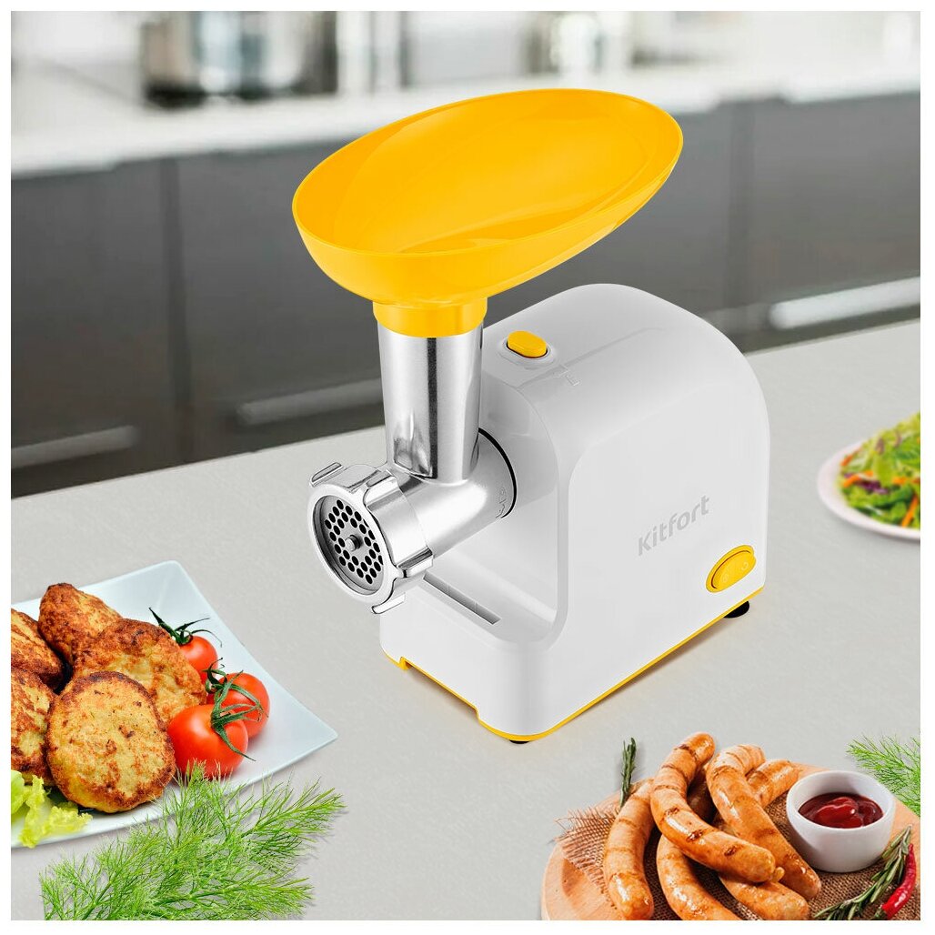 Мясорубка Kitfort КТ-2113-2 бело-желтая интересное: