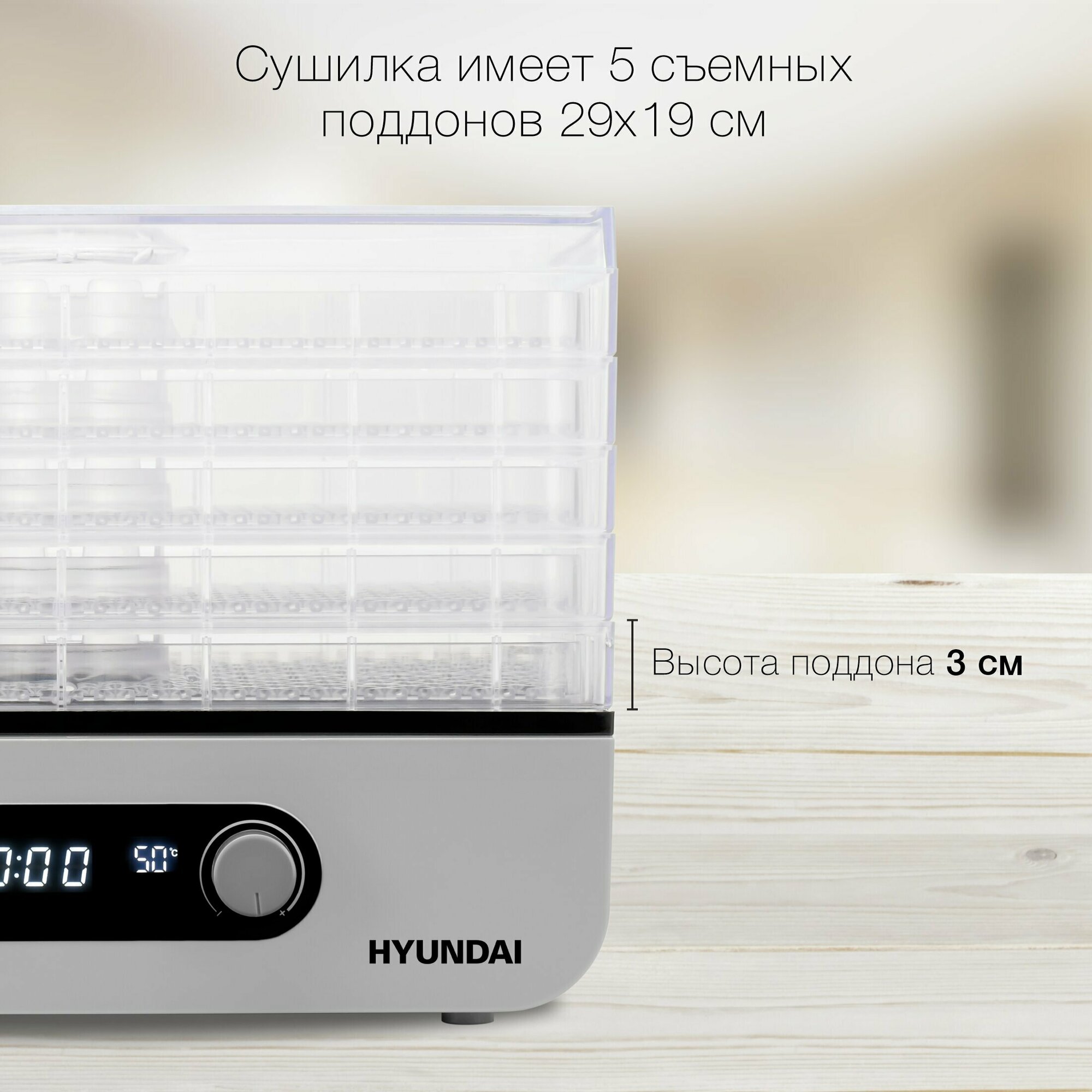 Сушилка для овощей и фруктов Hyundai HYDF-5033 (5под.400Вт,диспл)