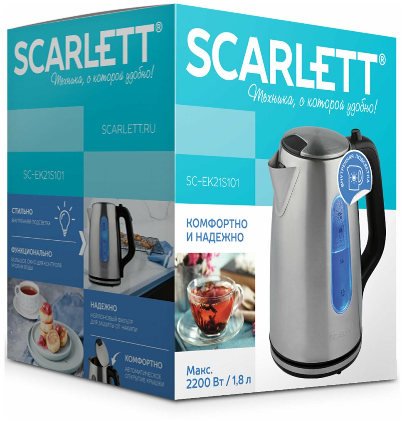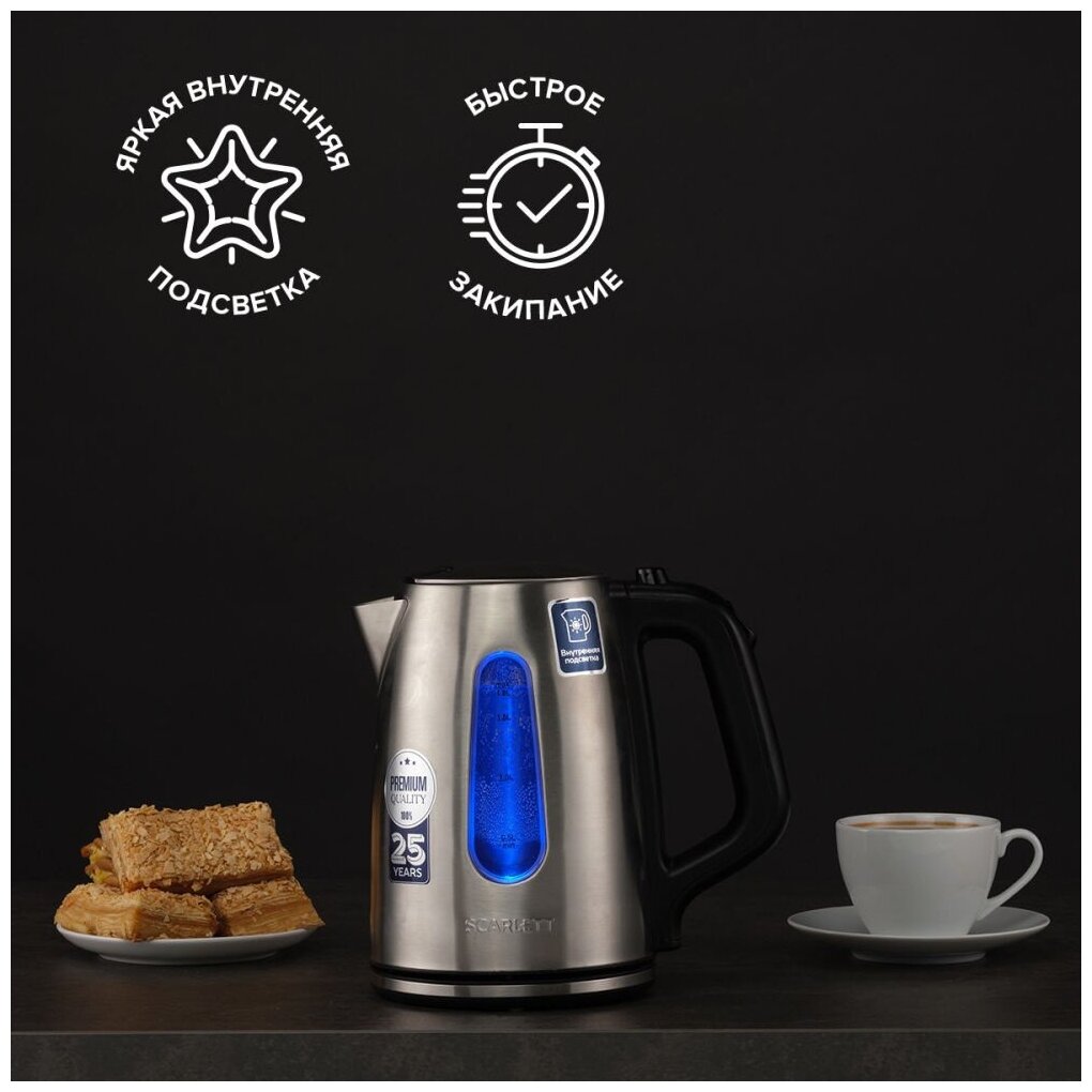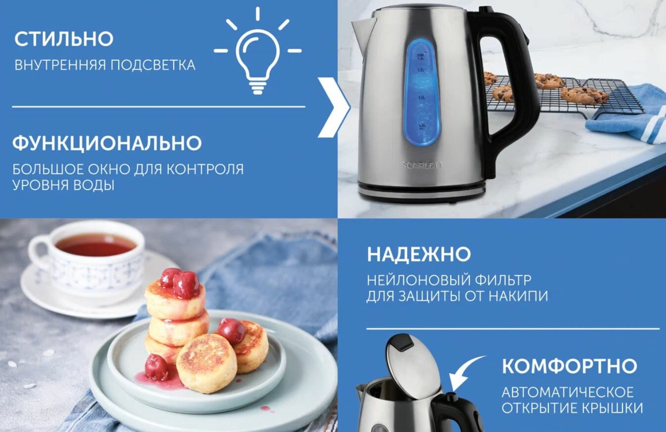 Чайник электрический Scarlett SC-EK21S101 1.8л. 2200Вт серебристый (корпус: нержавеющая сталь) интересное: