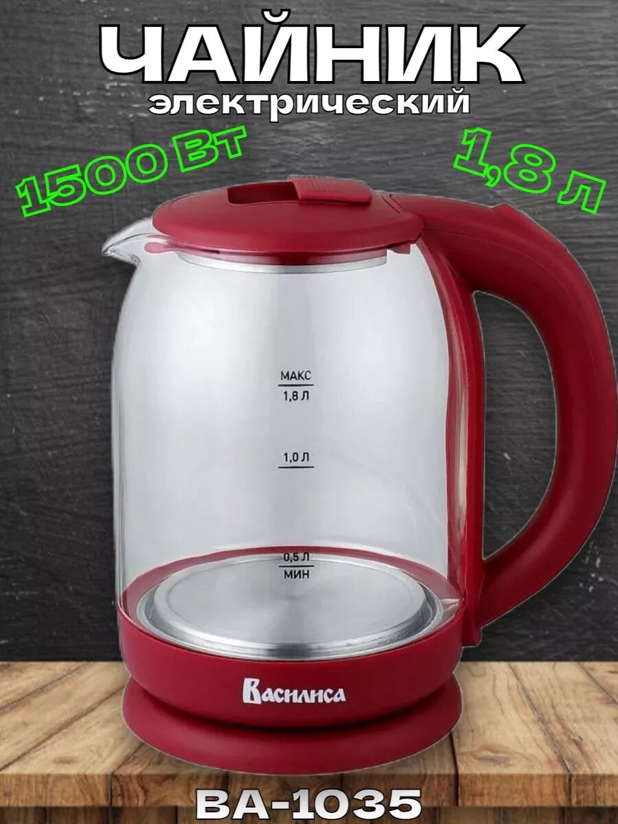 Чайник электрический Василиса ВА-1035 1,8л, стекло, бордовый, 1500 Вт(12) ВА-1035 бордовый .