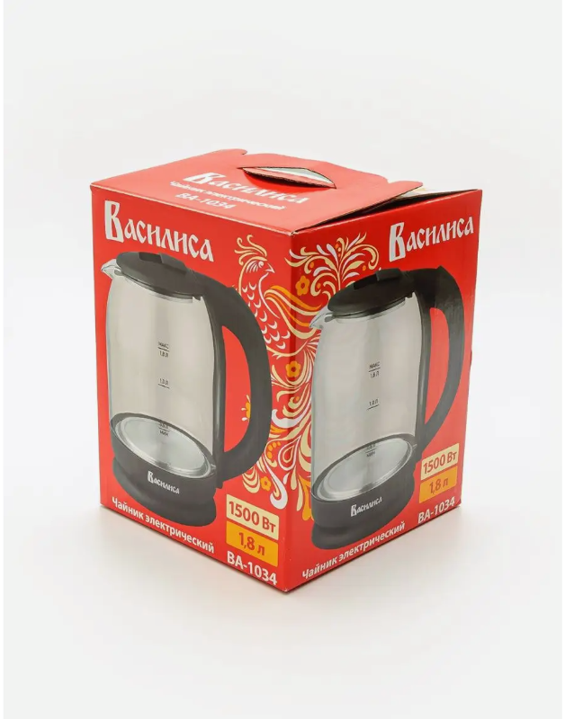 Чайник электрический стеклянный, 1.8 л, 1500 Вт, Василиса ВА-1035