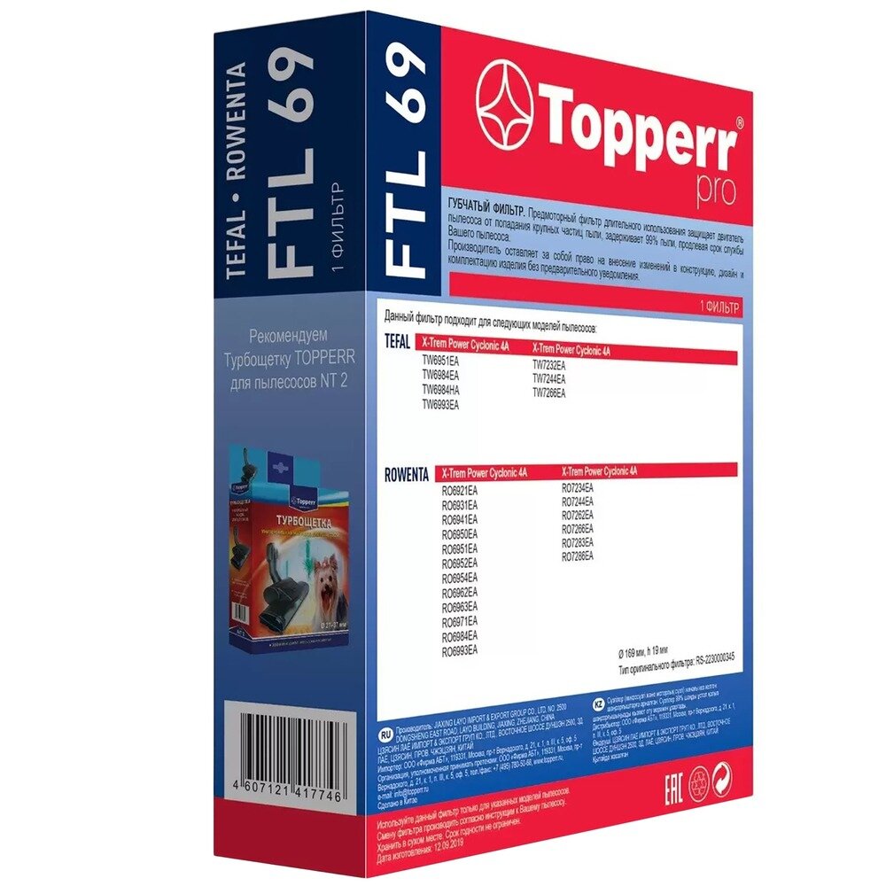 Купить Topperr Губчатый фильтр для пылесоса TEFAL, ROWENTA, 1 шт., FTL 69