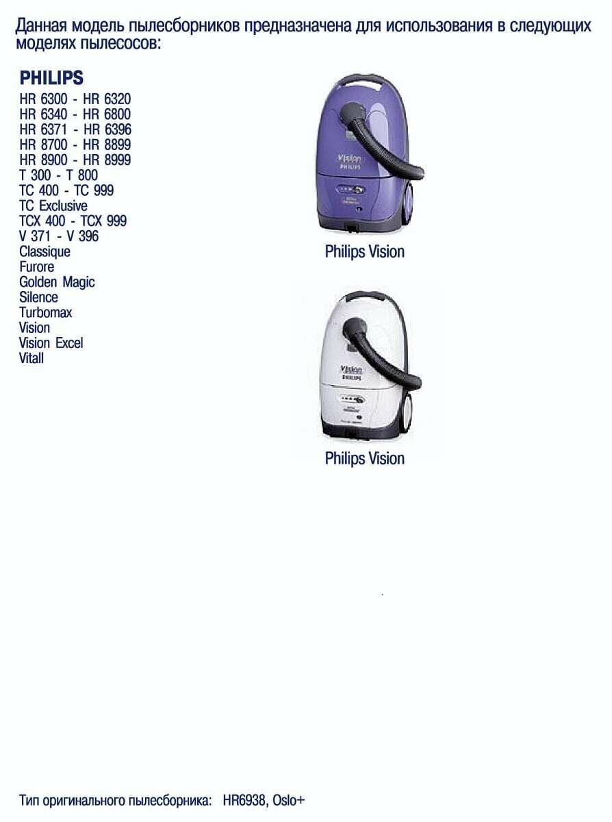 | Производитель пылесоса | Philips / Vesta |