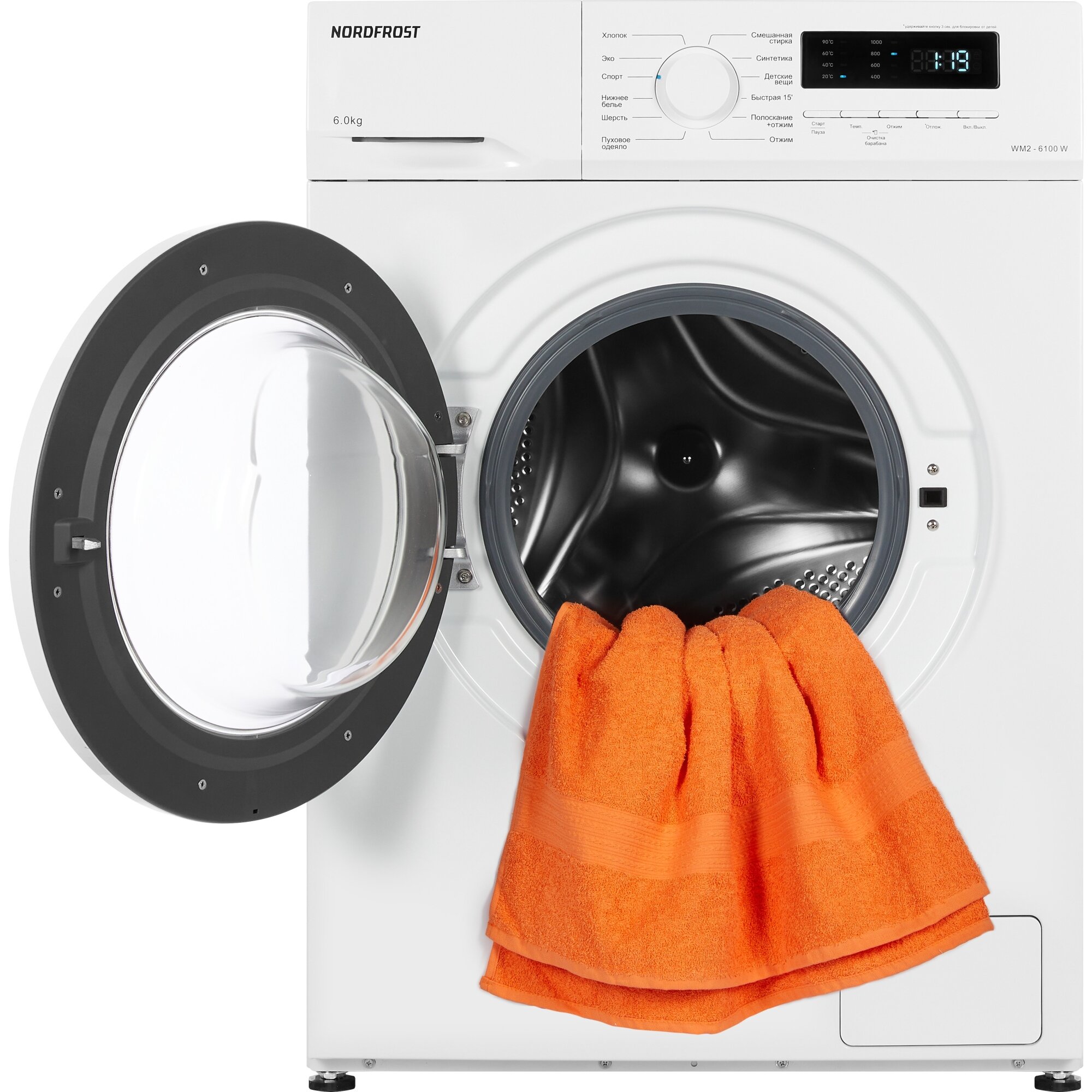Стиральная машина NORDFROST WM2 6100 W, 6 кг загрузка, 40 л объем, 1000об/мин,12 программ, отсрочка старта, быстрая стирка, LED-дисплей, цвет белый интересное: