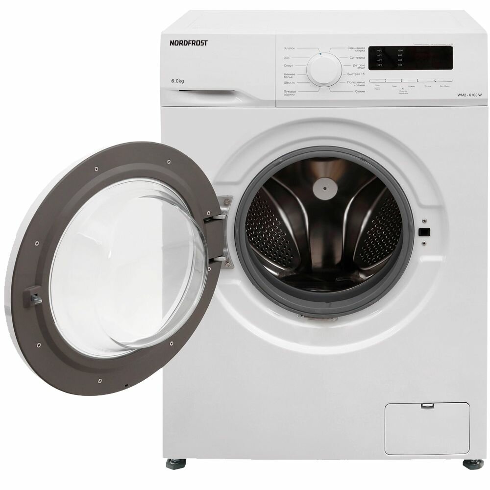 Стиральная машина NORDFROST WM2 6100 W, 6 кг загрузка, 40 л объем, 1000об/мин,12 программ, отсрочка старта, быстрая стирка, LED-дисплей, цвет белый