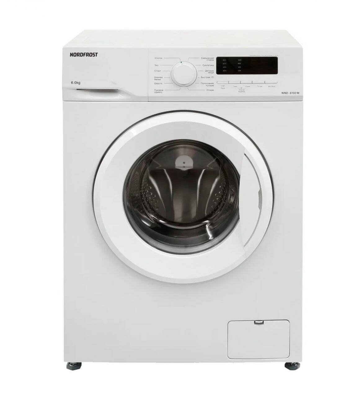 Стиральная машина NORDFROST WM2 6100 W, 6 кг загрузка, 1000об/мин,12 программ, отсрочка старта, быстрая стирка, LED-дисплей, цвет белый