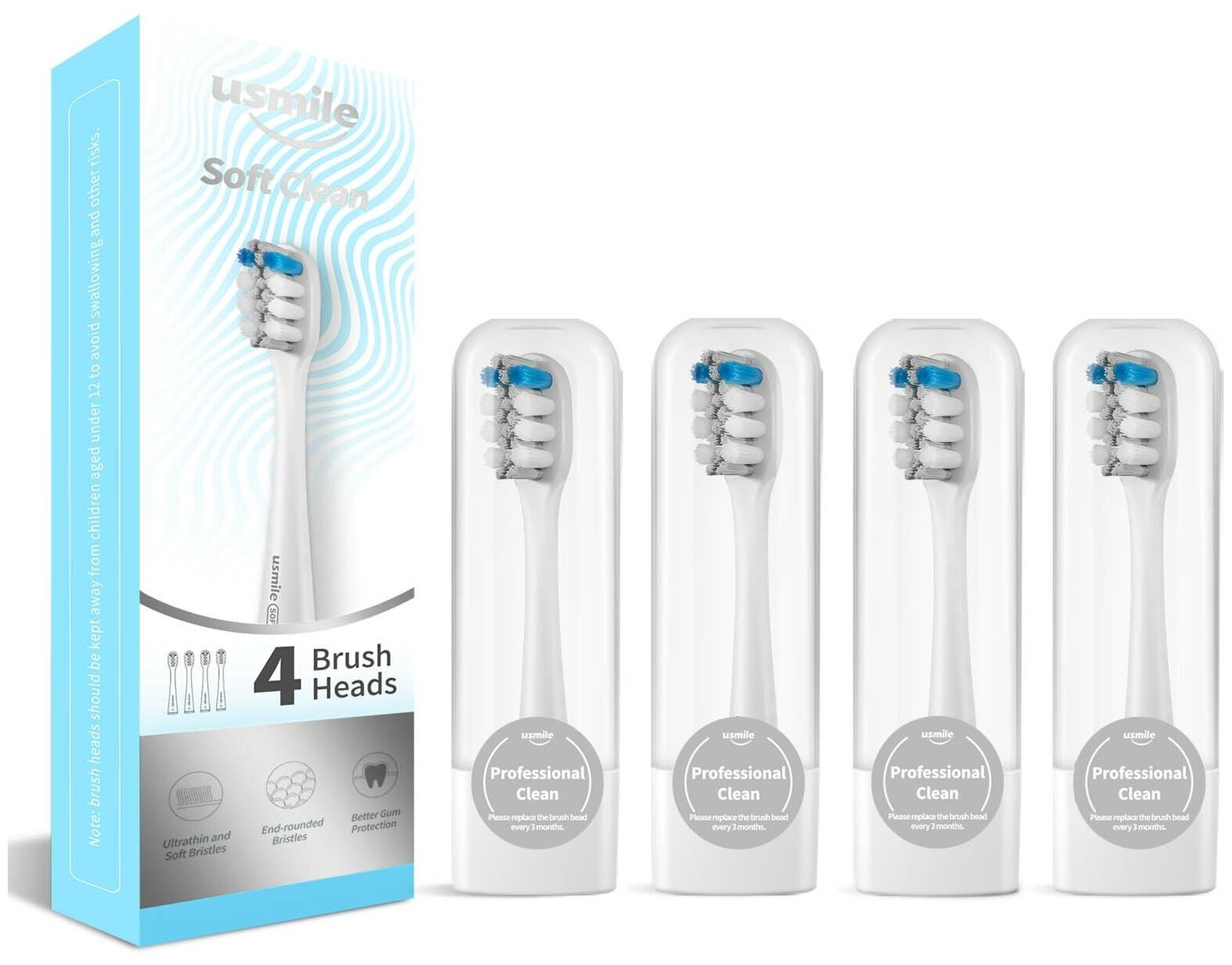Сменные чистящие насадки для звуковой зубной щетки usmile Soft Clean Brush Head PRO03, белый