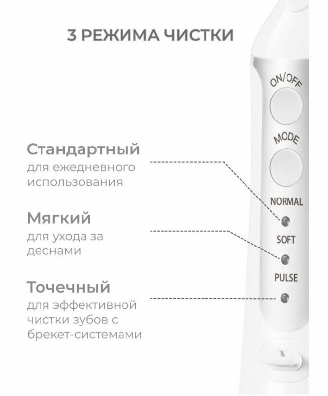 | Отзыв: | Мощная струя воды, которую он производит, эффективно удаляет налет с зубов, при этом нет никакого дискомфорта в области десен, и даже самые чувствительные зубы хорошо переносят эту процедуру. |