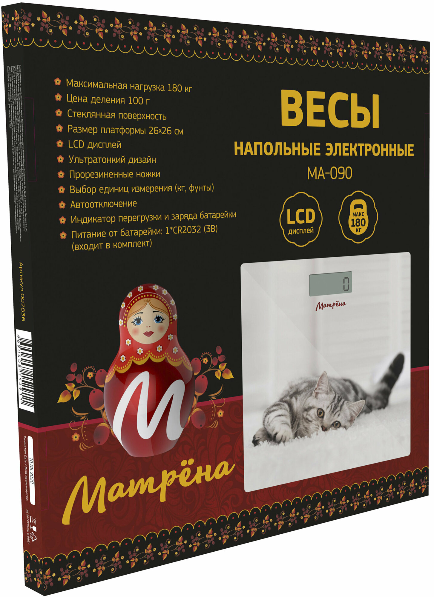 Весы напольные электронные Матрена МА-090, до 180 кг, кот
