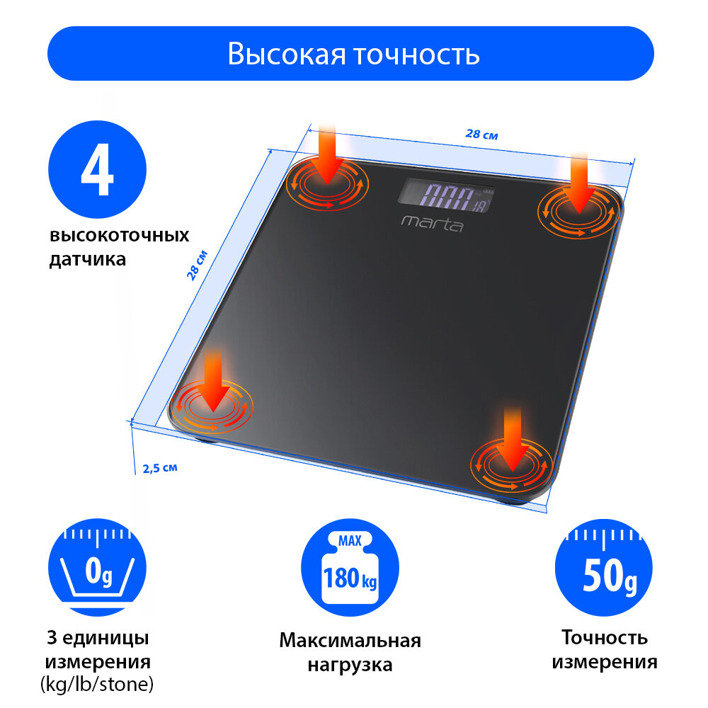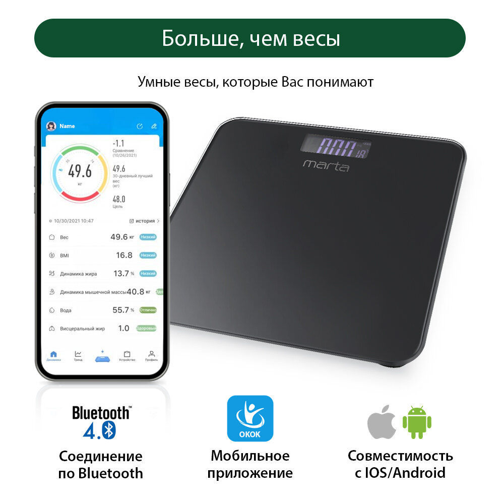 Весы напольные MARTA MT-1684 черный жемчуг LCD диагностические, умные с Bluetooth интересное: