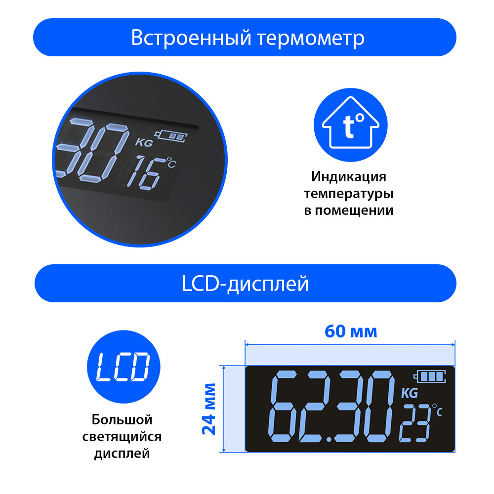| Дополнительная информация | единицы измерения кг/фунты/стоуны; индикация заряда батареи |