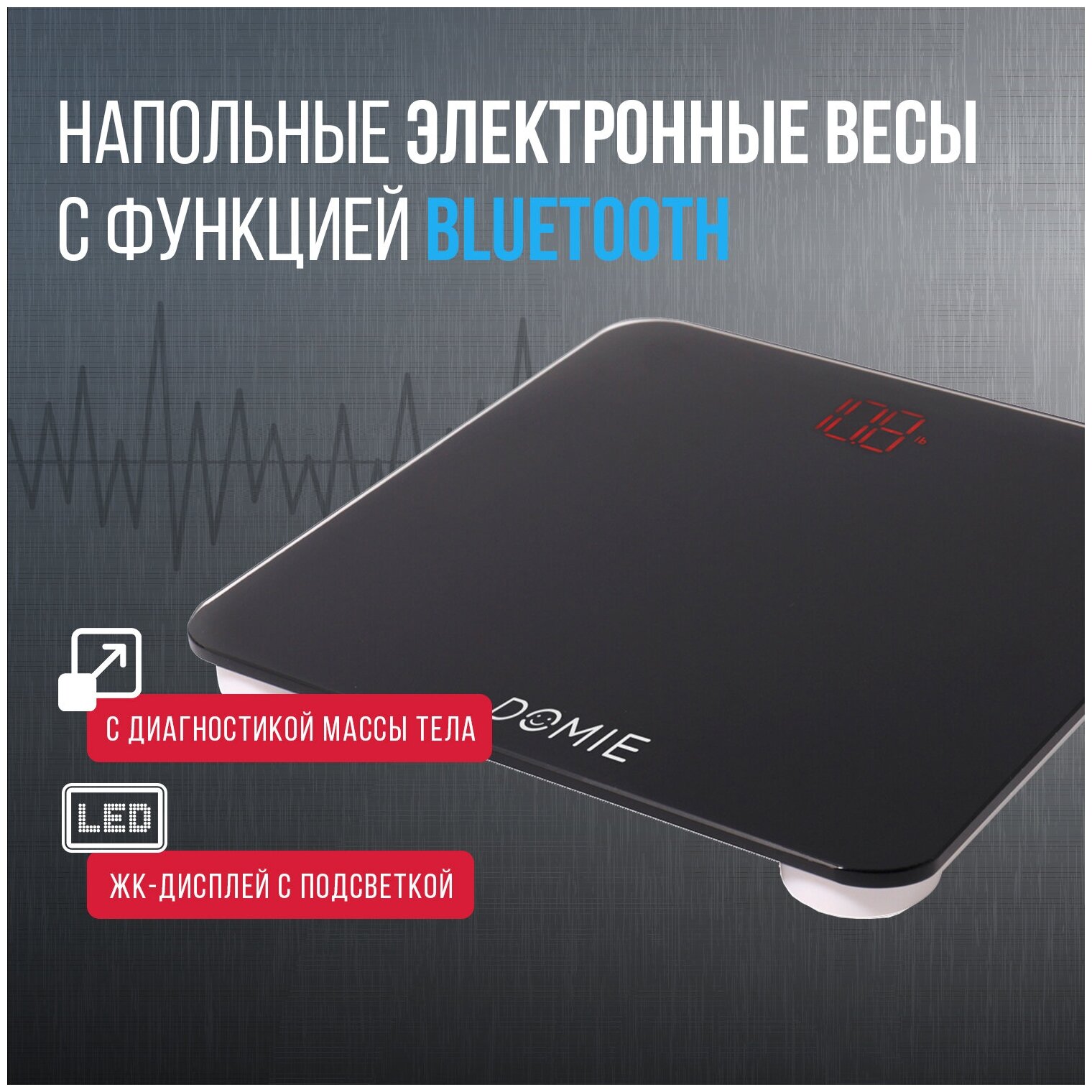DOMIE Весы электронные с функцией Bluetooth подключения, до 180 кг, с цифровым дисплеем
