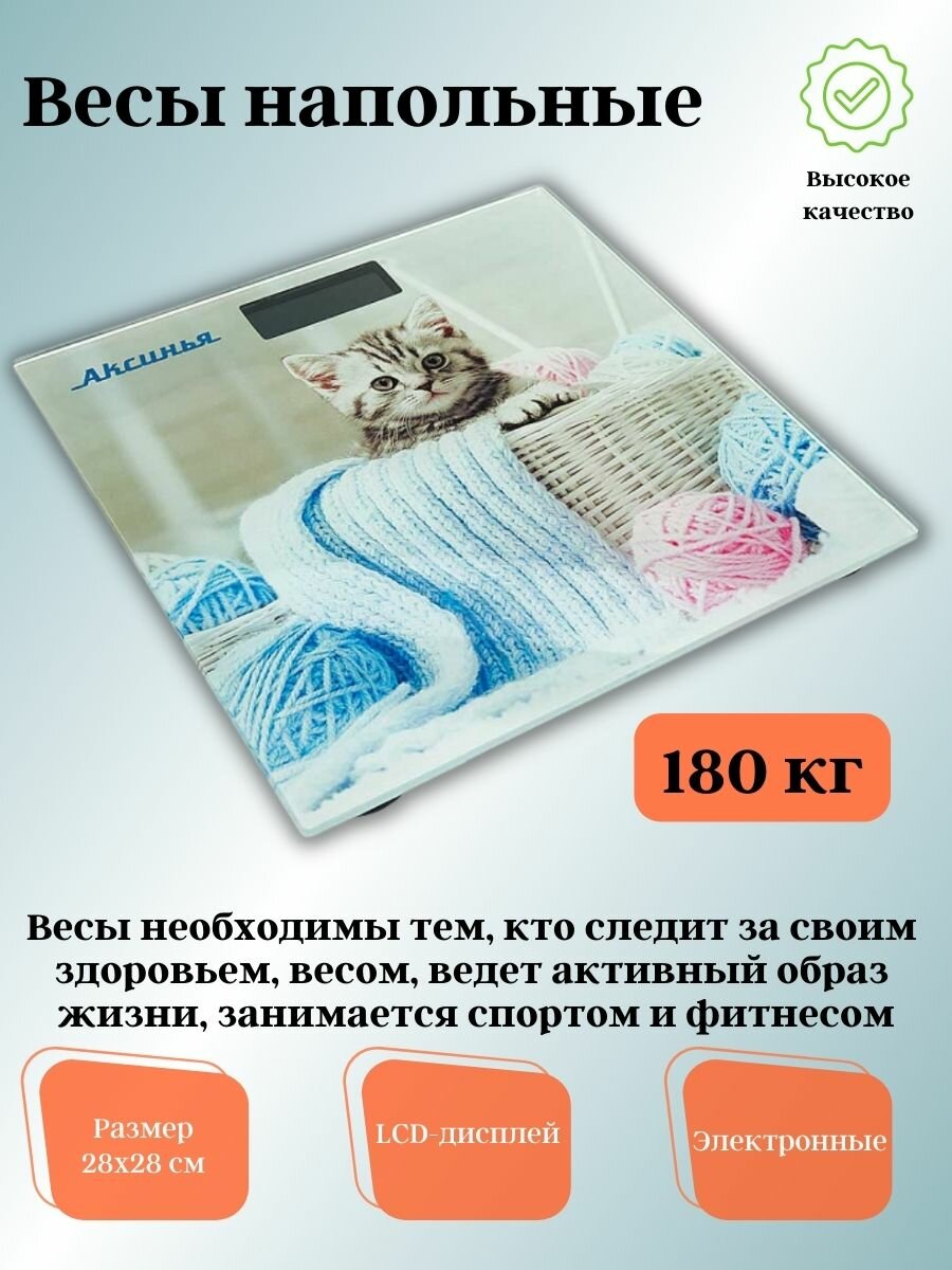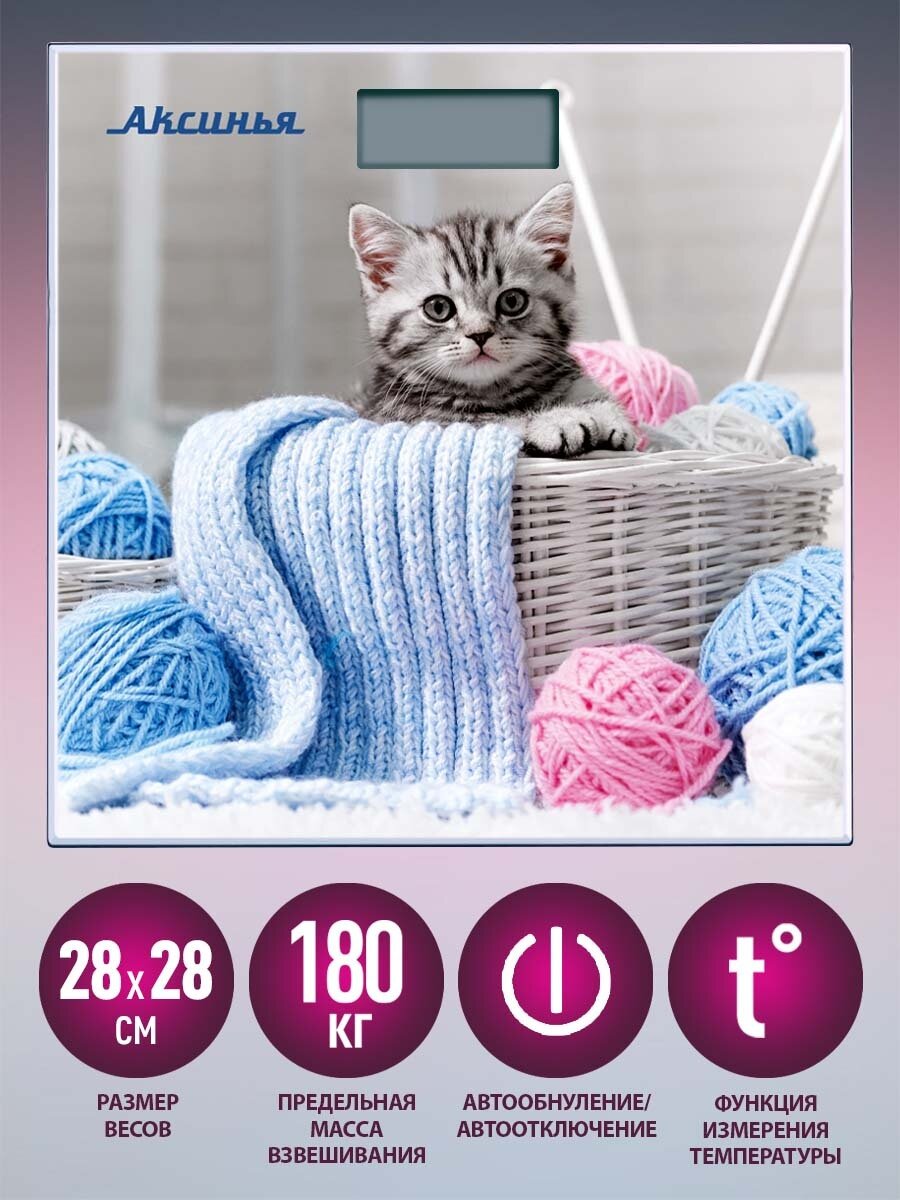 Весы напольные электронные аксинья КС-6002 "Забавный котенок": 180 кг, 28*28см (Россия) (10)